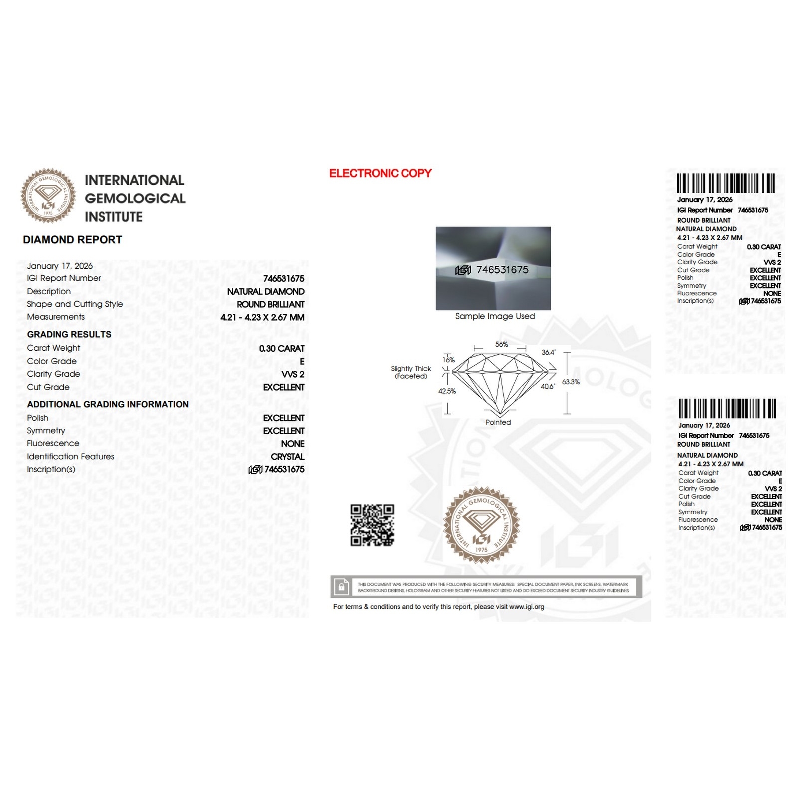 IGI-zertifizierter Diamant CT 0,30 E VVS2