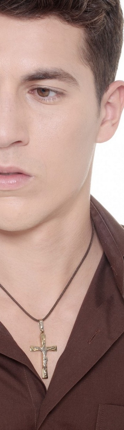 Kreuz Anhänger mit Jesus aus Weiß- und Gelbgold 18k. Das Kreuz ist etwa 4,5 cm.