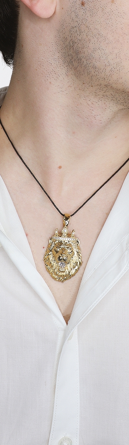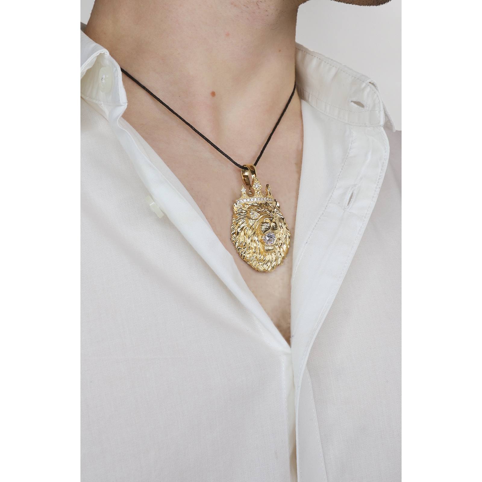 Löwenanhänger aus 18 Karat Gelbgold mit Zirkonia. Der Anhänger ist etwa 4.8x3.3 cm.
