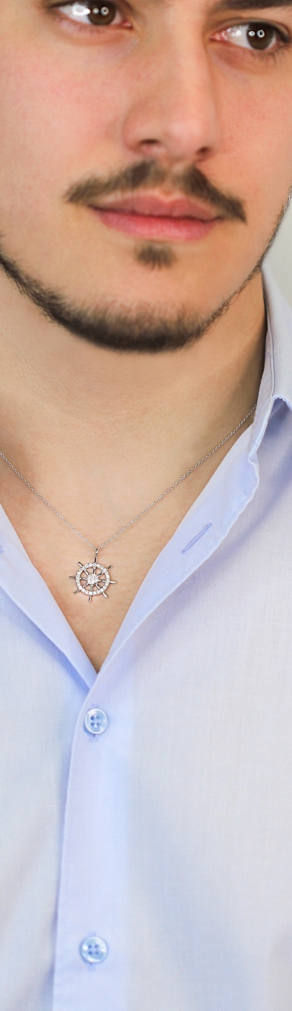 Herrenkette Weißgold mit Steuerrad-Anhänger aus Diamanten