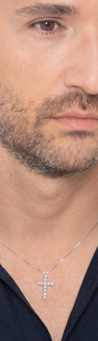 Herrenkette Kreuzkette 750er Weißgold mit Diamanten, 50 cm