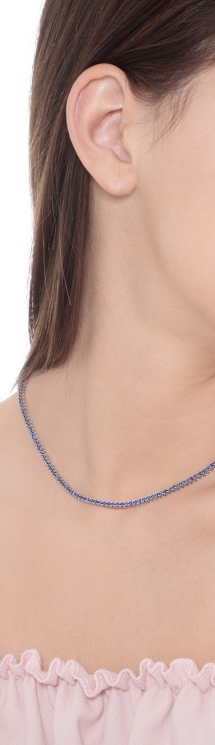 Weißgold 750 Tennis Halskette mit blauen Saphiren.Das Karatgewicht kann je nach Länge der Halskette variieren.Das Glied ist etwa 2.20 mm breit.