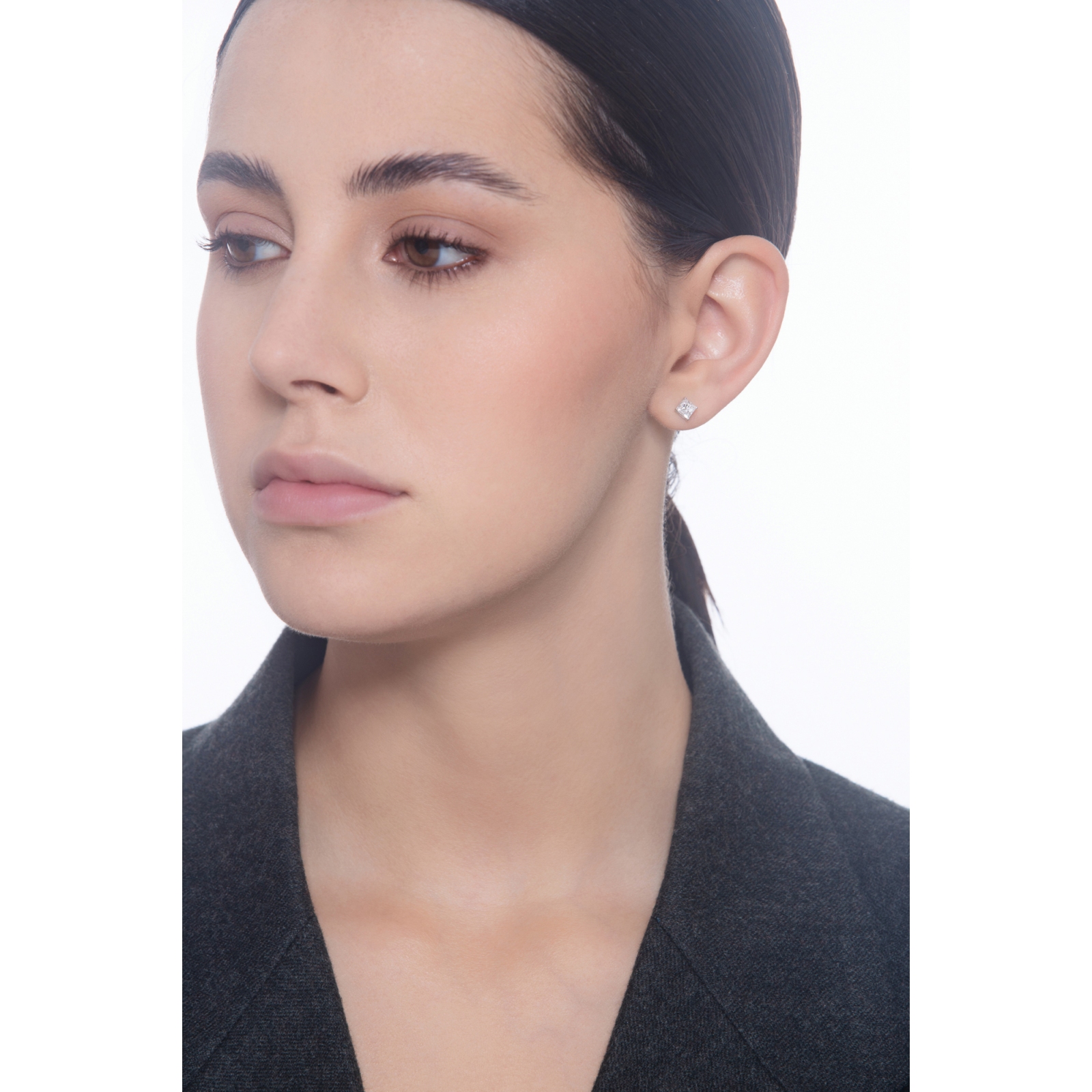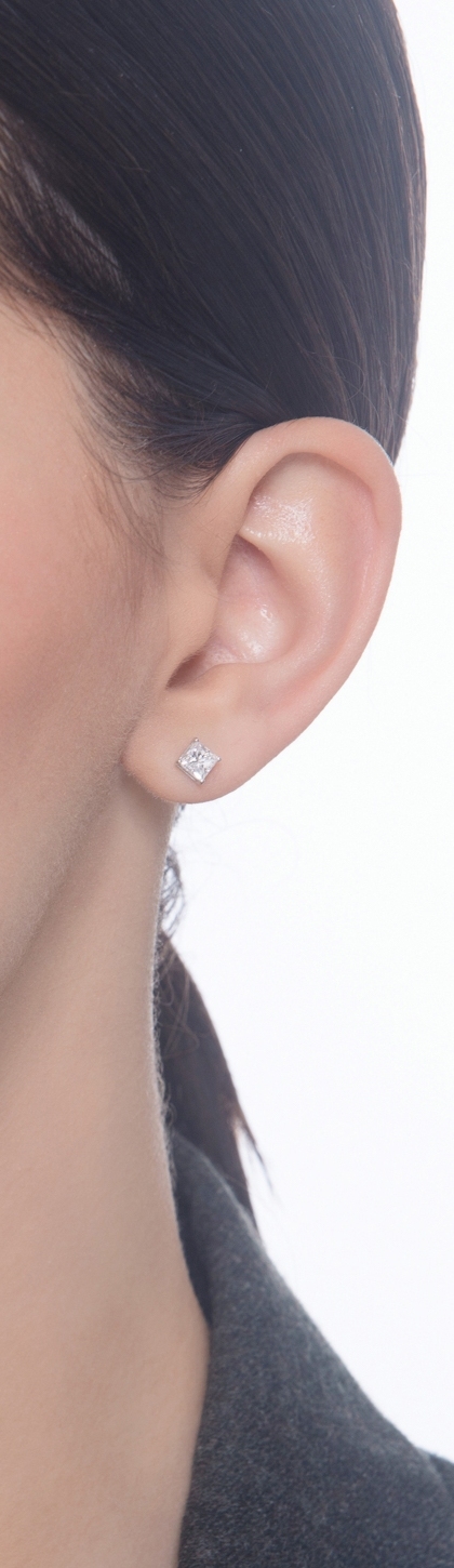 Einzelner Ohrstecker mit Diamant Prinzessschliff 0.50 kt GIA Weißgold 750