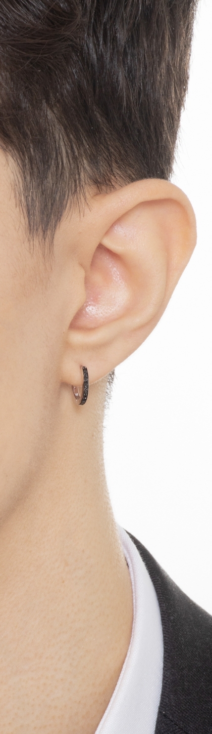 Herren einzelne Creole mit schwarzen Diamanten Weißgold