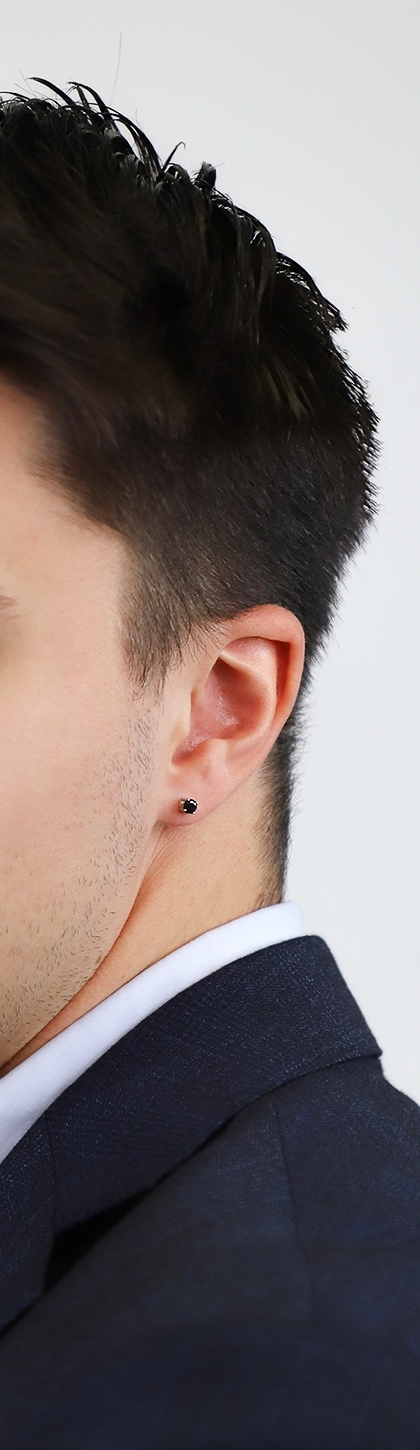 Weißgold 18k Herren einzelner Ohrstecker mit schwarzen Diamant, 0,22 ct