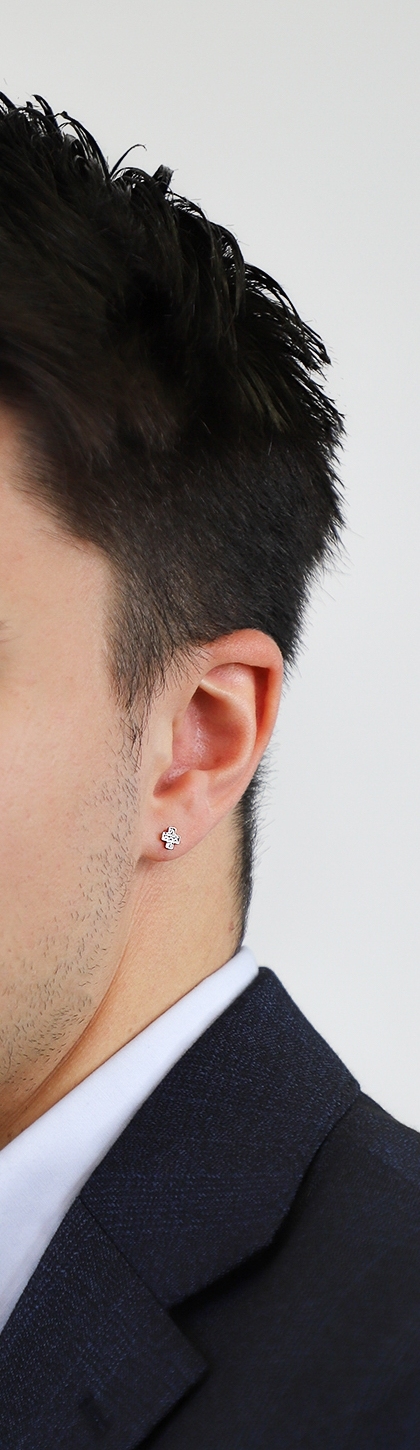 Weißgold Ohrring Herren mit Kreuz aus Diamanten
