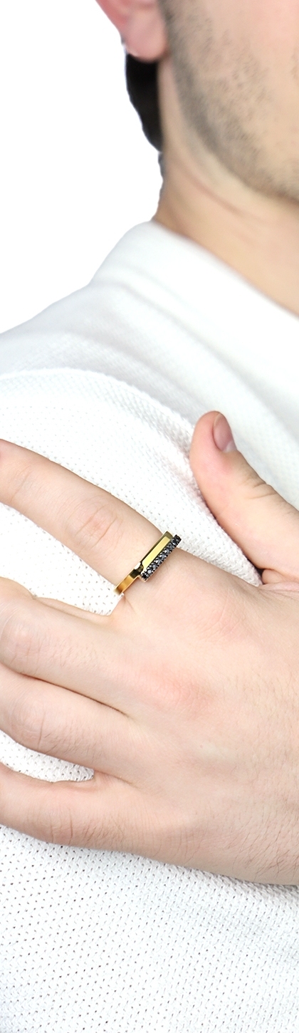 Die schwarzen Diamanten verleihen dem Ring eine geheimnisvolle Tiefe und machen ihn zu einem idealen Schmuckstück für besondere Anlässe oder als modisches Statement im Alltag.