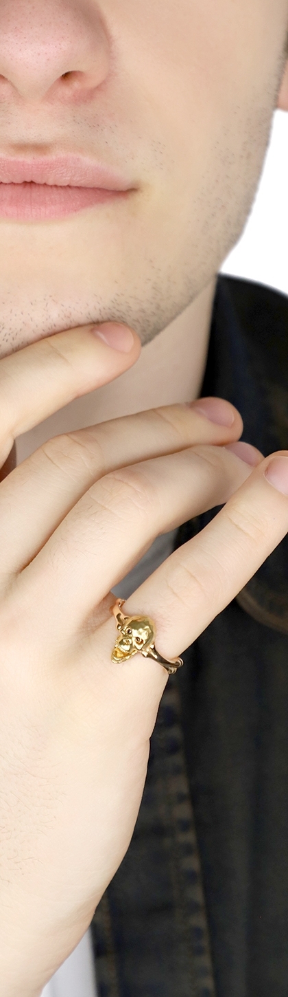 Totenkopf Ring aus 18k Roségold mit schwarzen Diamanten