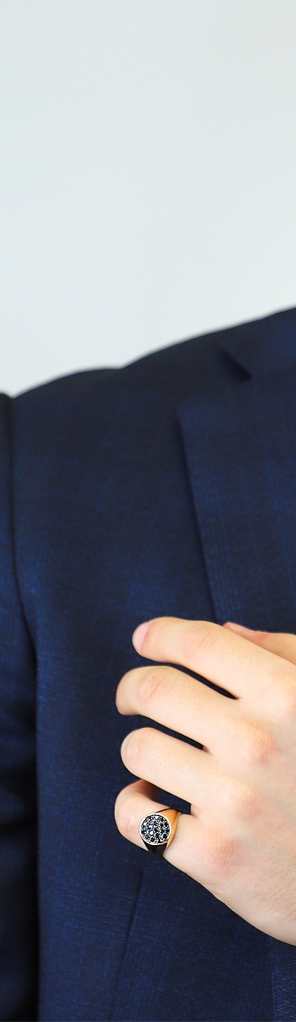 Siegelring Herren Roségold 750 mit schwarzen Diamanten
