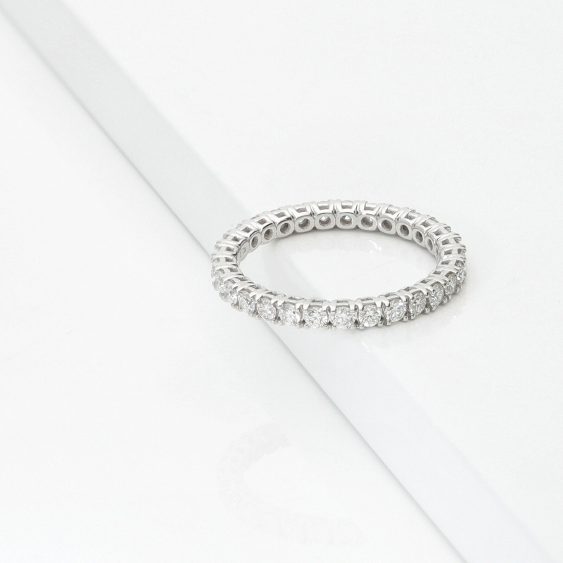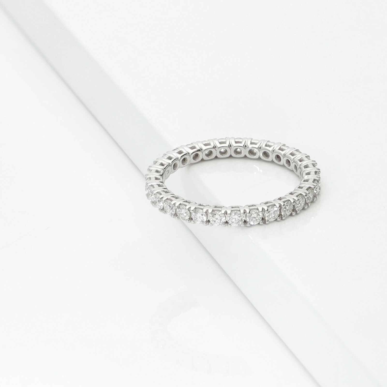 Schmaler Eternity Ring mit Diamanten Brillantschliff, Farbe H, Reinheit VS aus 18K Weißgold