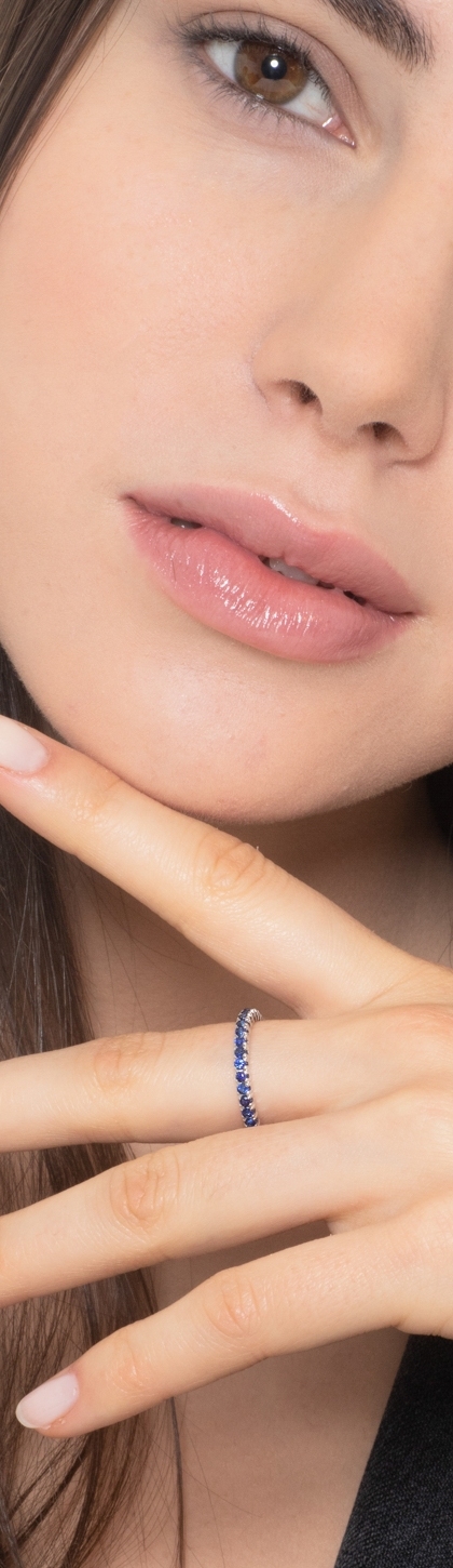 Memoire Ring Weißgold 18K mit blauen Saphiren
