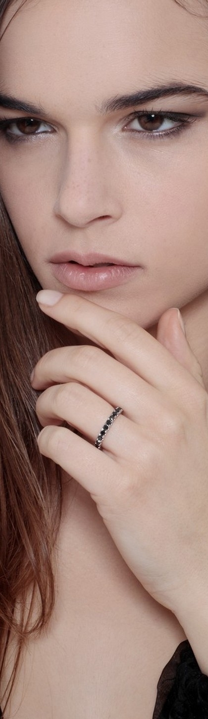 Memoire Ring Weißgold mit schwarzen Diamanten