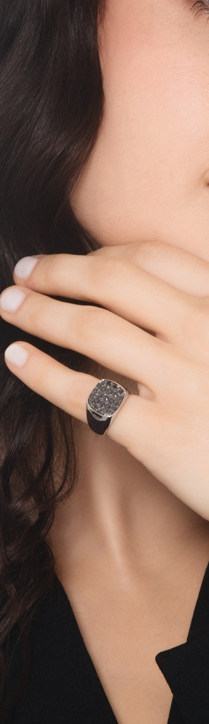 Kleiner Finger Ring Weißgold mit schwarzen Diamanten