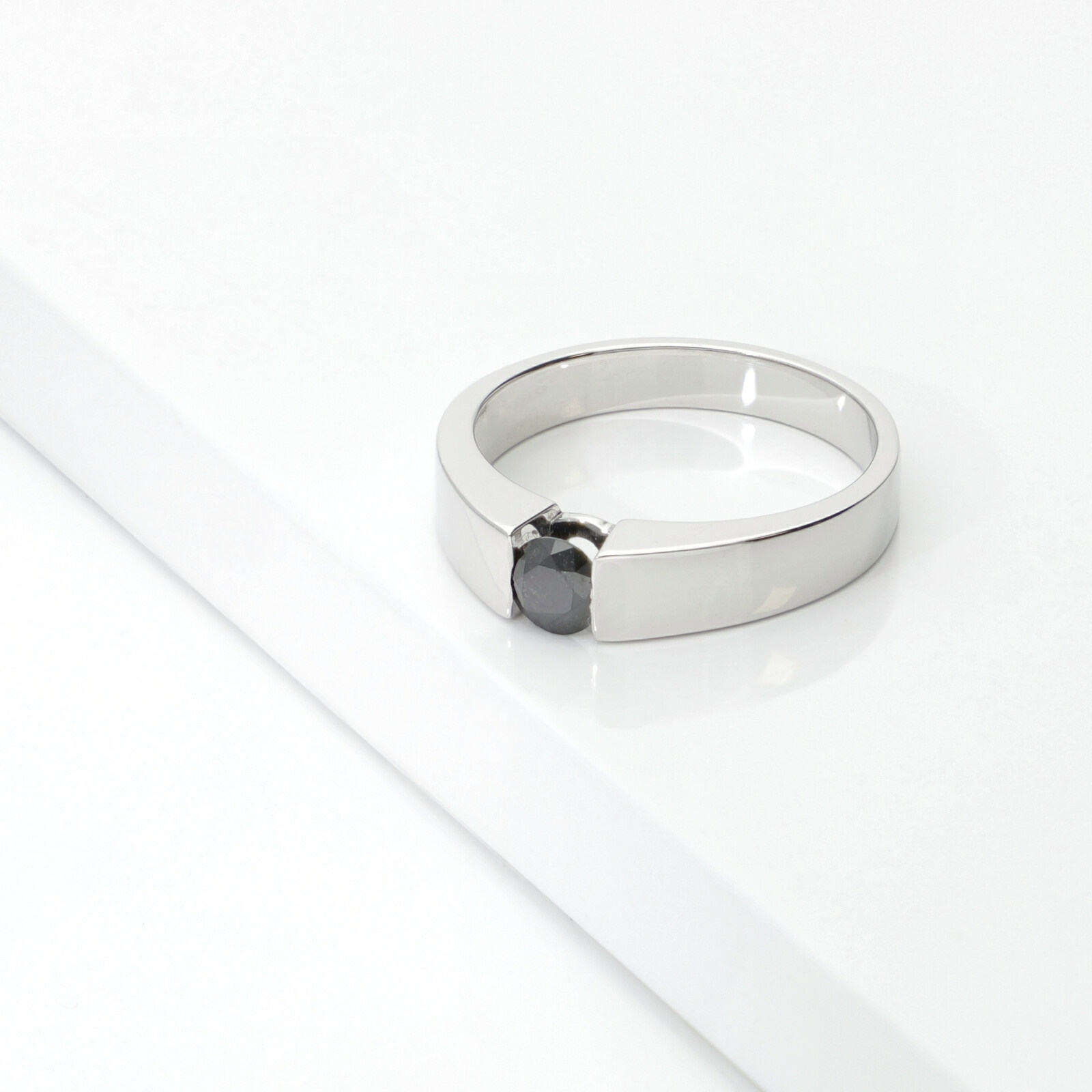 Schwarzer Diamant Weissgold Herrenring Spannfassung