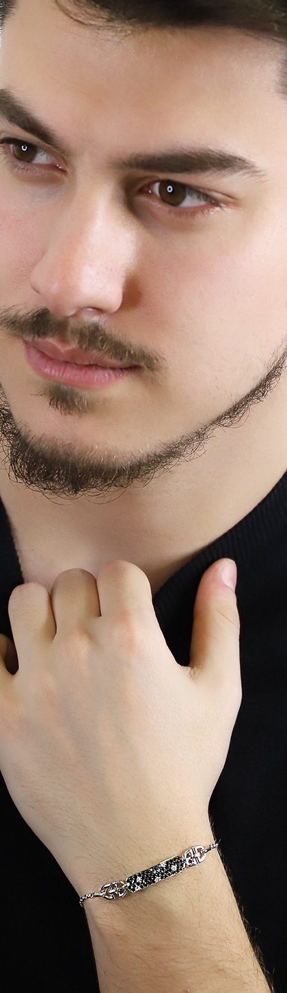 Herren Armband mit Diamanten schwarz weiß Weissgold