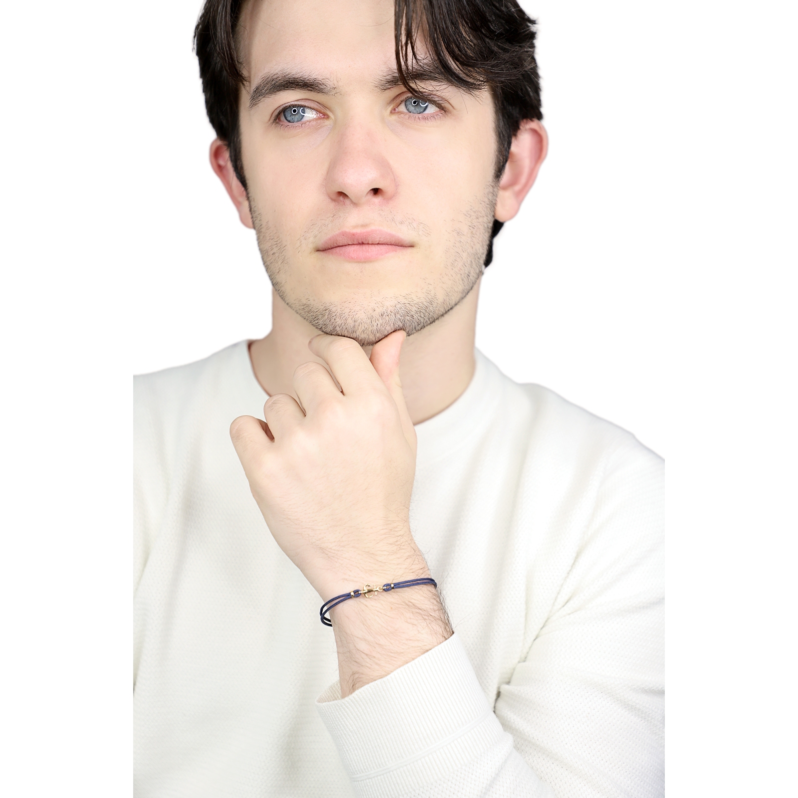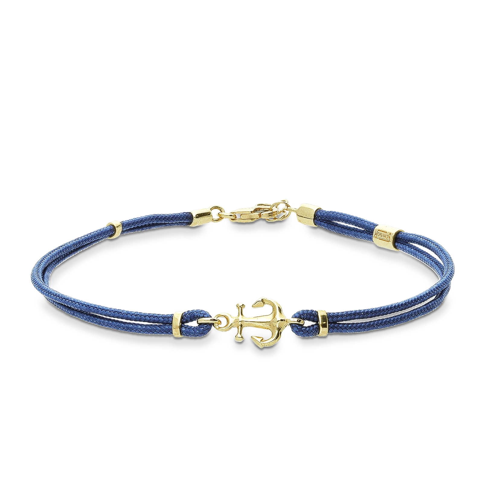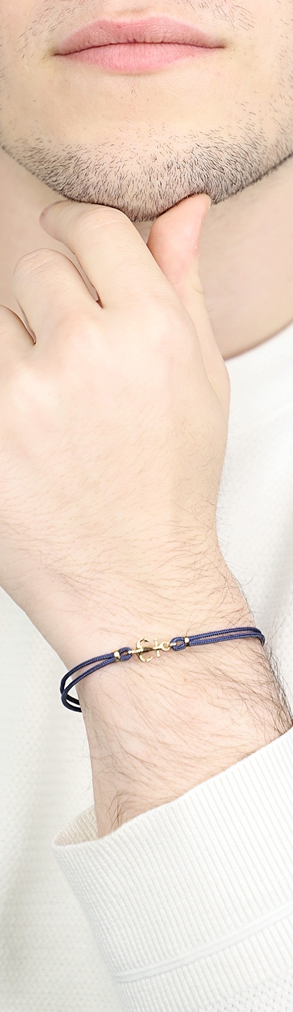 Blaues Armband mit Anker aus 750er Gelbgold