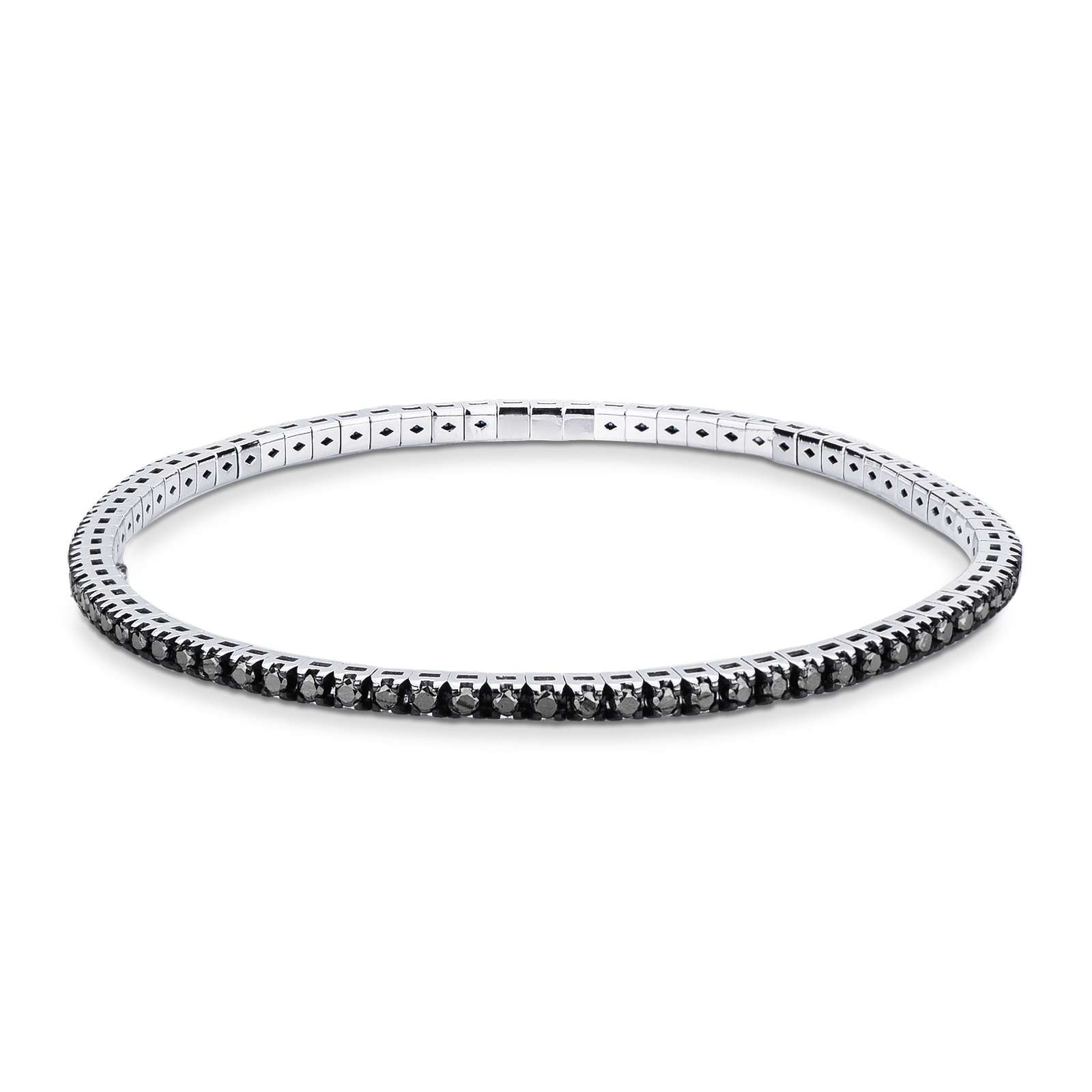 750er Weißgold elastisches Tennisarmband schwarzen Diamanten
