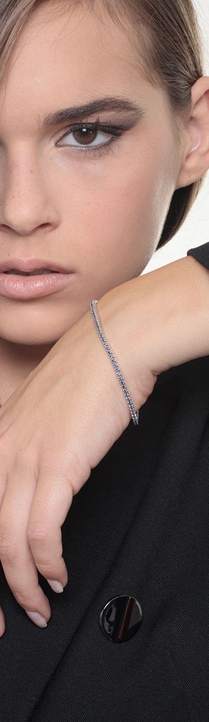 750er Weißgold Tennisarmband mit blauen Saphiren