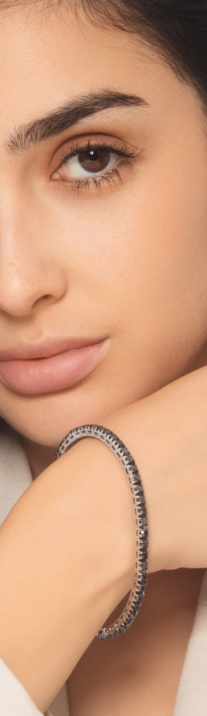 Elastisches Tennisarmband schwarze Diamanten Weißgold 18K