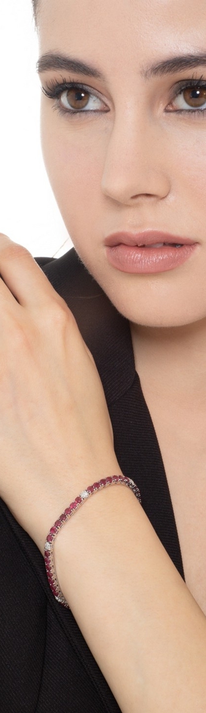 ICED OUT Tennisarmband mit Diamanten und Rubinen Weißgold 18K