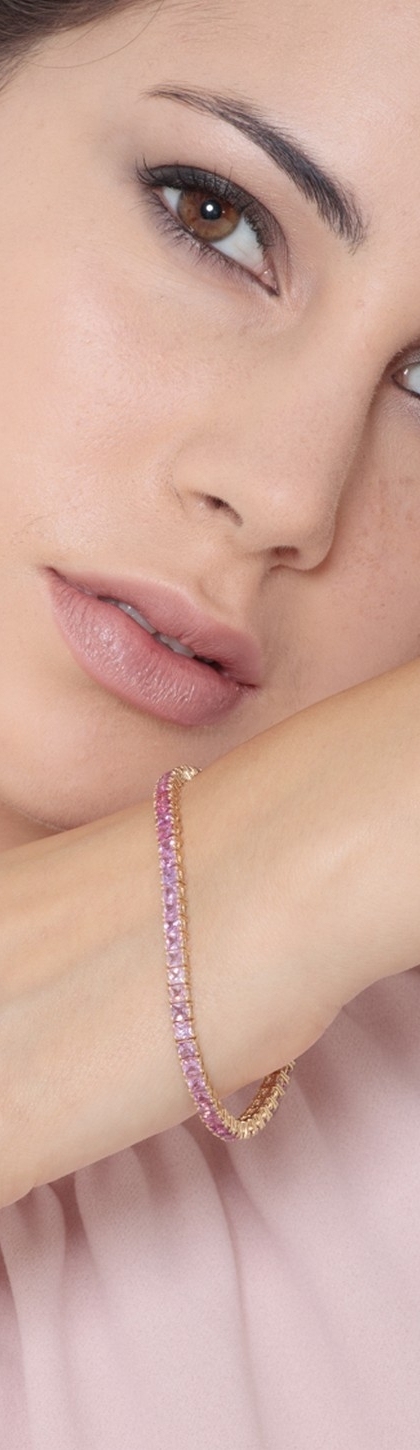 Saphir Rosa Tennisarmband aus Gelbgold 18K