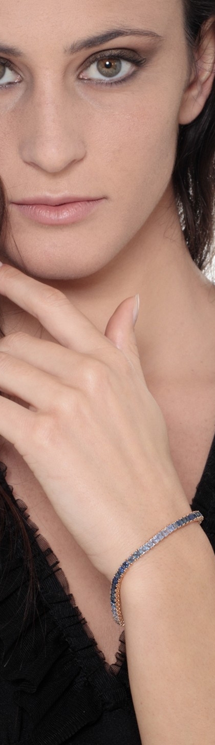 Tennisarmband aus Roségold 18K mit blauen Saphiren