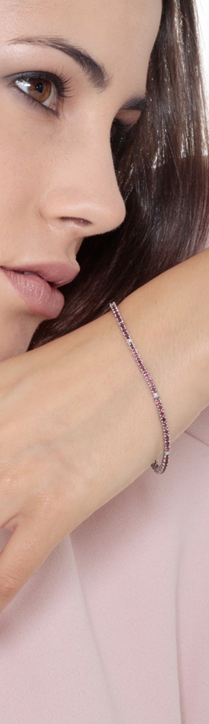 Weißgold 18k Tennisarmband mit Rubinen und Diamanten