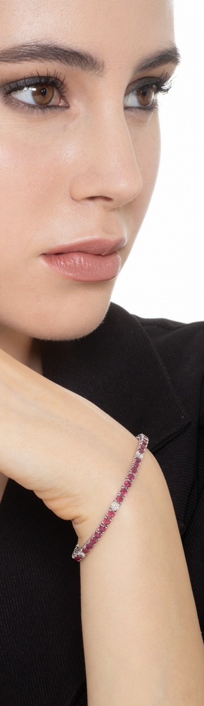 Weißgold 750 Tennisarmband mit Rubinen und Brillanten