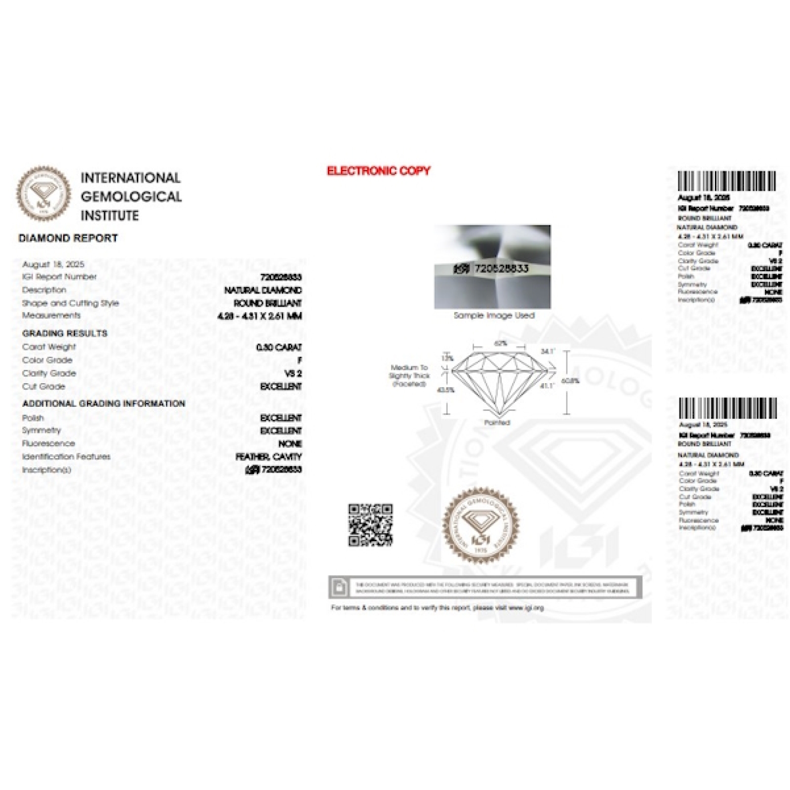 IGI-zertifizierter Diamant CT 0,30 F VS2