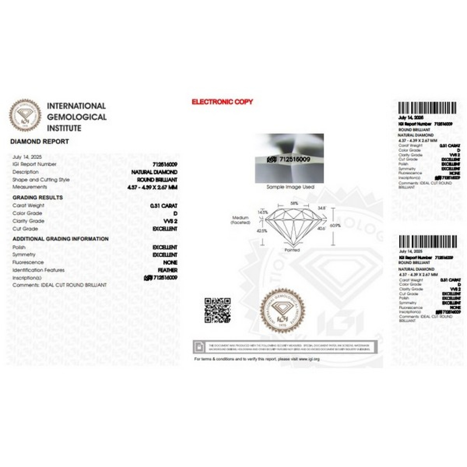 IGI-zertifizierter Diamant CT 0,31   D   VVS2
