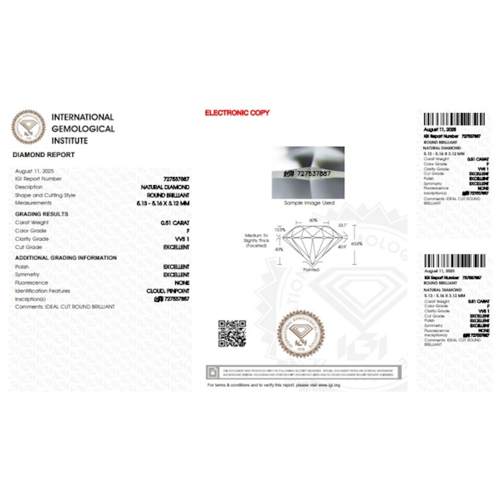 IGI-zertifizierter Diamant CT 0,51 F VVS1