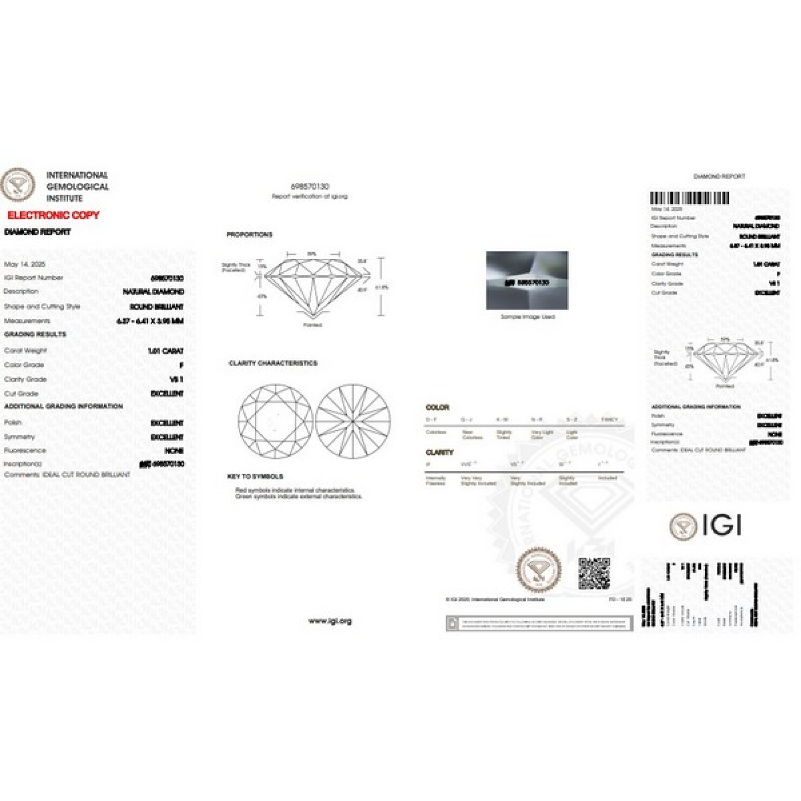 IGI-zertifizierter Diamant CT 1,01 F VS1