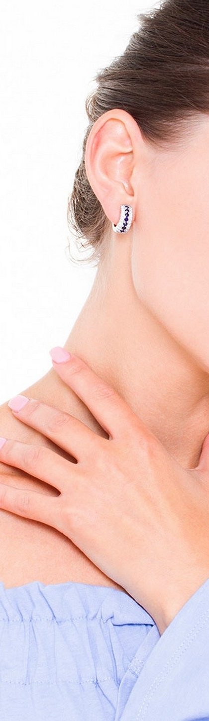 Creolen Weißgold 18K mit Diamanten und blauen Saphiren