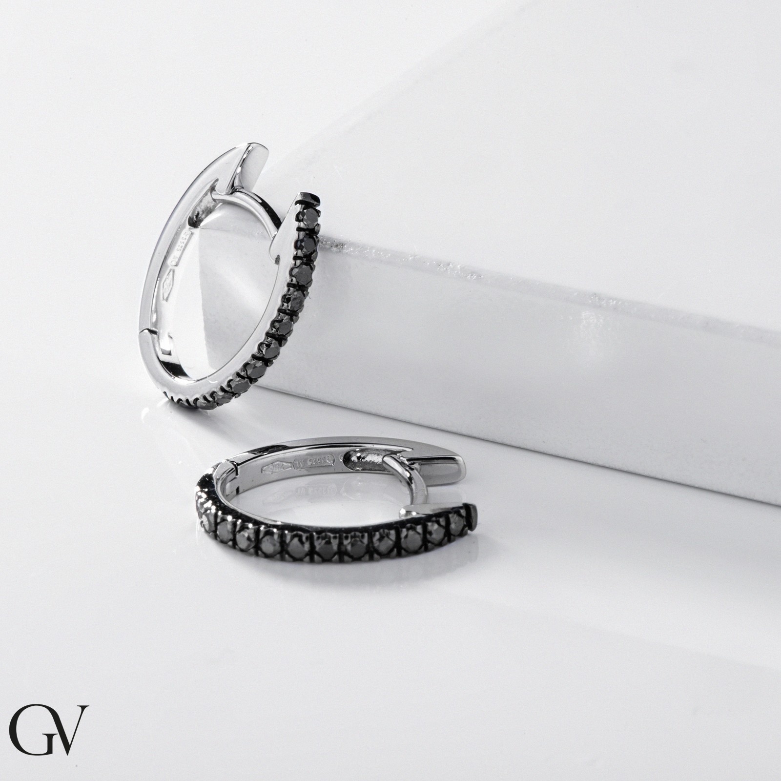 Ovale Ohrringe mit schwarzen Diamanten Weißgold