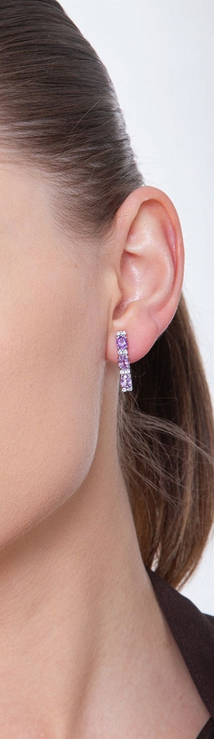 Ovale Ohrringe Weißgold 750 mit Diamanten und Amethysten
