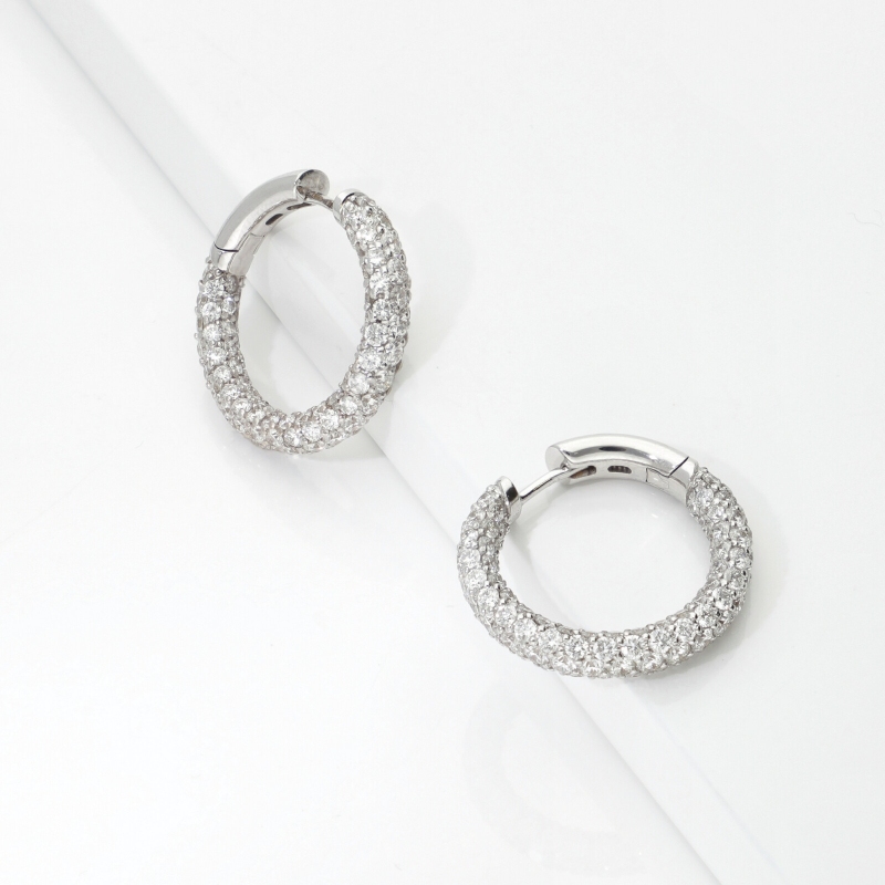 Das edle Weißgold bildet die perfekte Bühne für die funkelnden Diamanten, die in präziser Handarbeit gefasst sind. Ihr strahlendes Leuchten verleiht jedem Look einen Hauch von Luxus – dezent im Alltag, eindrucksvoll am Abend.