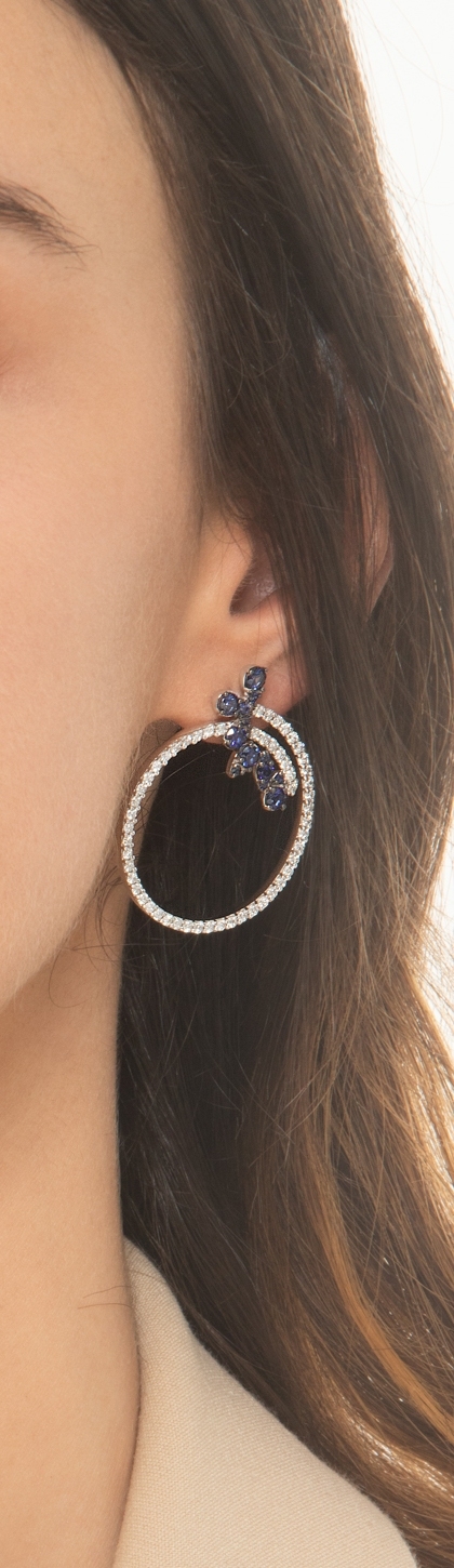 Weißgold-Ohrringe mit blauen Saphiren und Diamanten