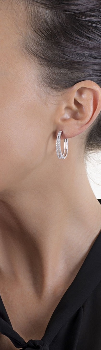 Zweireihige ovale Creolen aus 18k Weißgold mit Diamanten