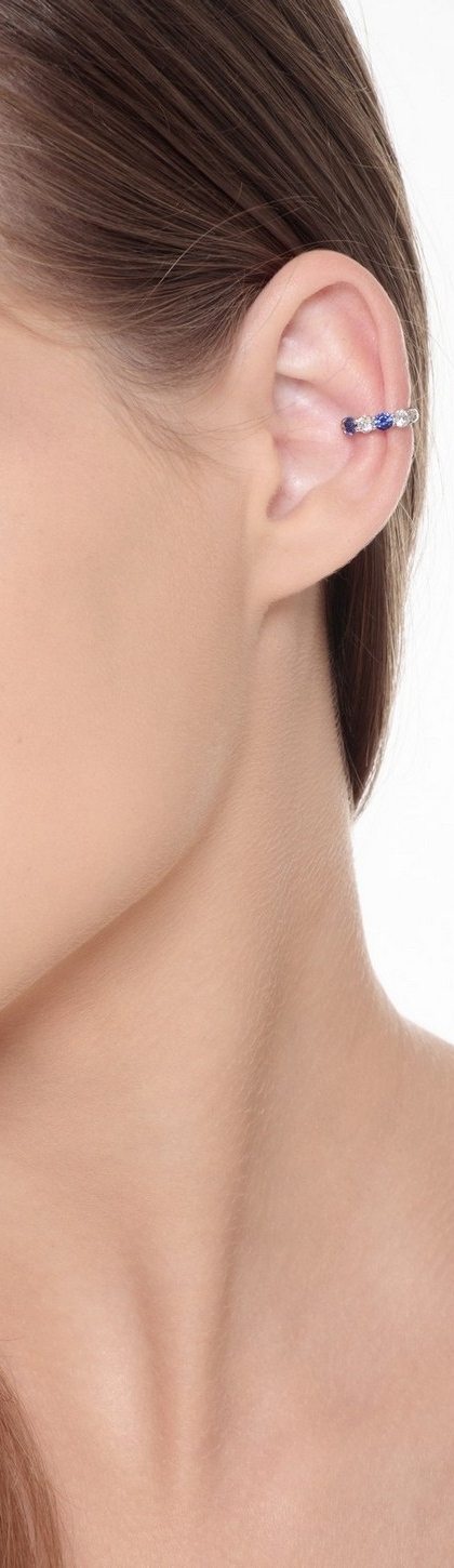 Earcuff aus Weißgold 18K mit Diamanten und blauen Saphiren