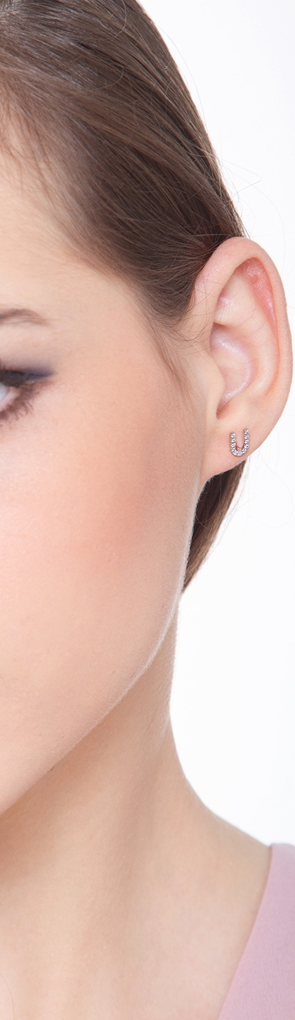 Ohrring mit Buchstabe U aus Weißgold 750 und Diamanten