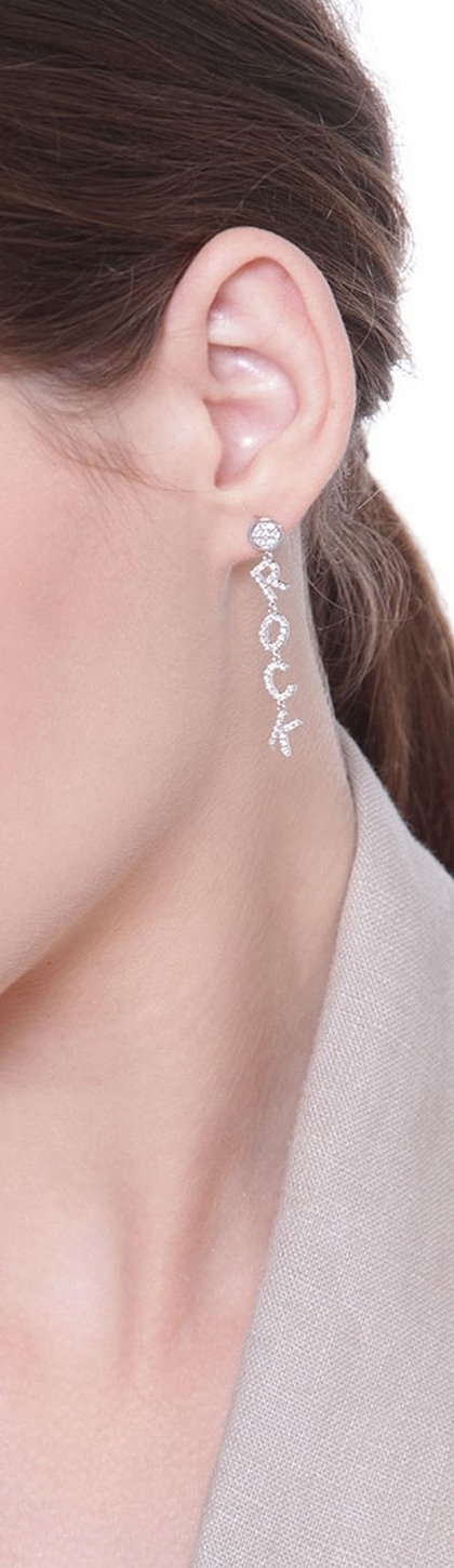 Ohrring mit Buchstaben ROCK aus Weißgold und Diamanten