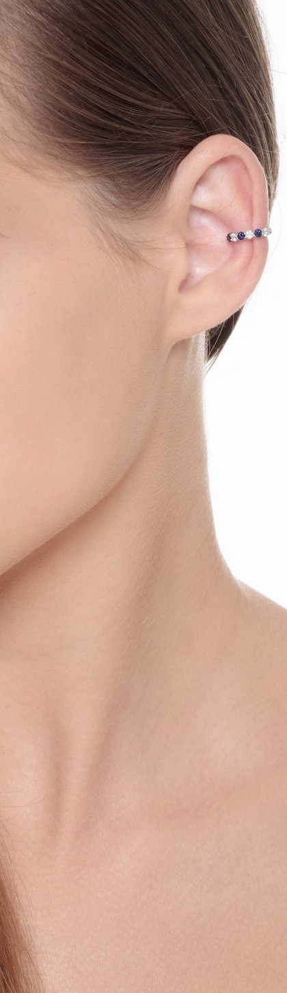 Weißgold 18k Earcuff mit blauen Saphiren und Brillanten