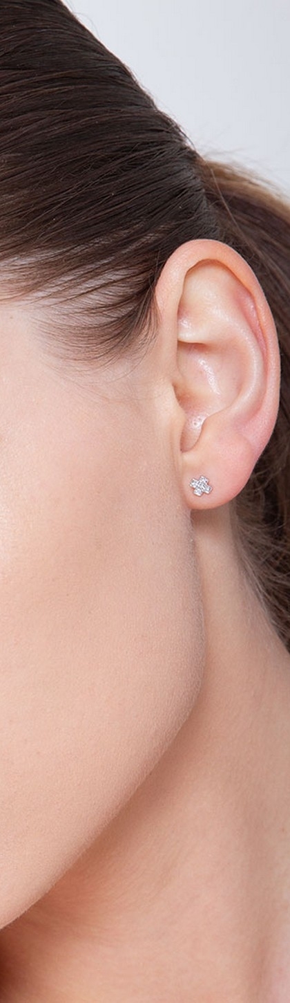 Weißgold 18K einzelner Ohrstecker mit Diamant-Kreuz