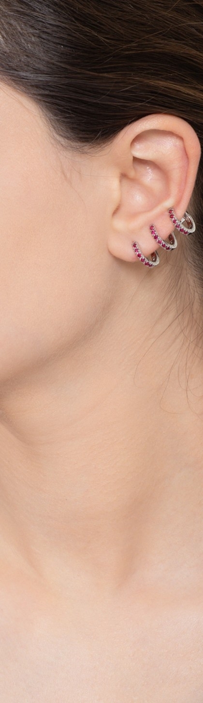 Weißgold 18k spiralförmiger einzelner Ohrring mit Rubinen, linkes Ohr