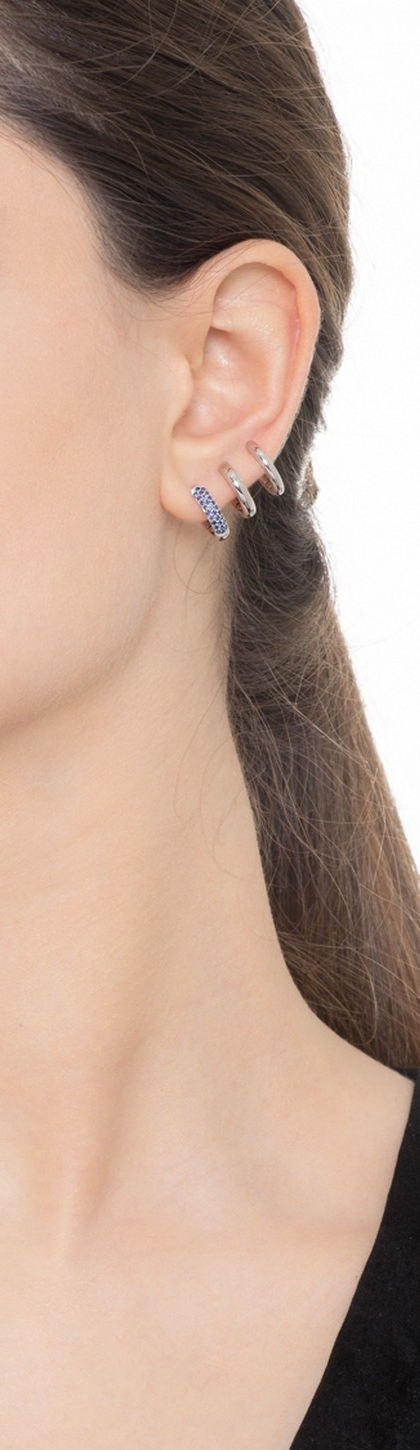 Weißgold einzelner Ohrring für linkes Ohr mit blauen Saphiren