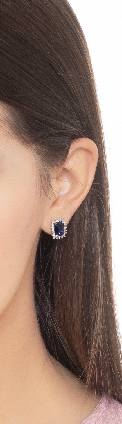Halo Ohrstecker mit blauen Saphiren und Diamanten