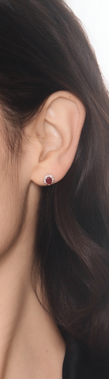 Rubin Halo Ohrstecker Weissgold mit Diamanten