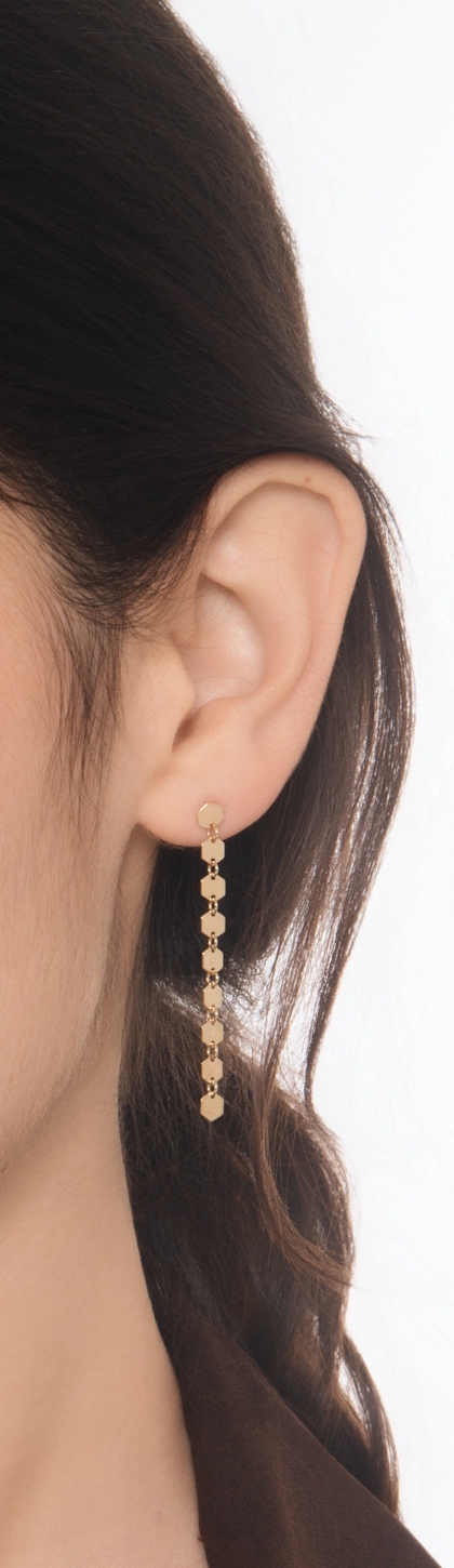 Gelbgold 750 Ohrringe mit Hexagonen etwa 5 cm lang.