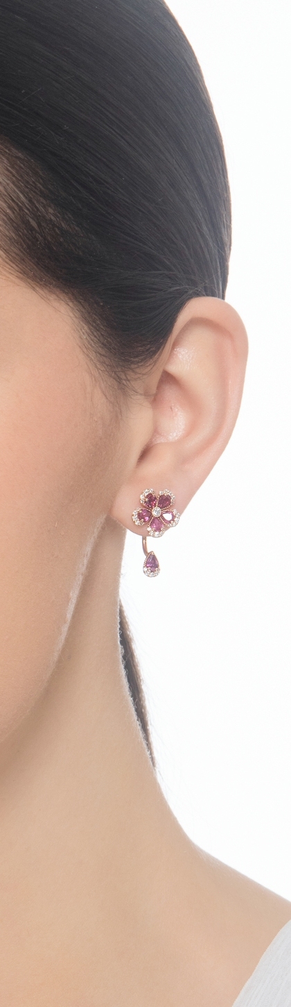 Blumen Ohrringe aus Roségold 18K mit Rubinen und Brillanten