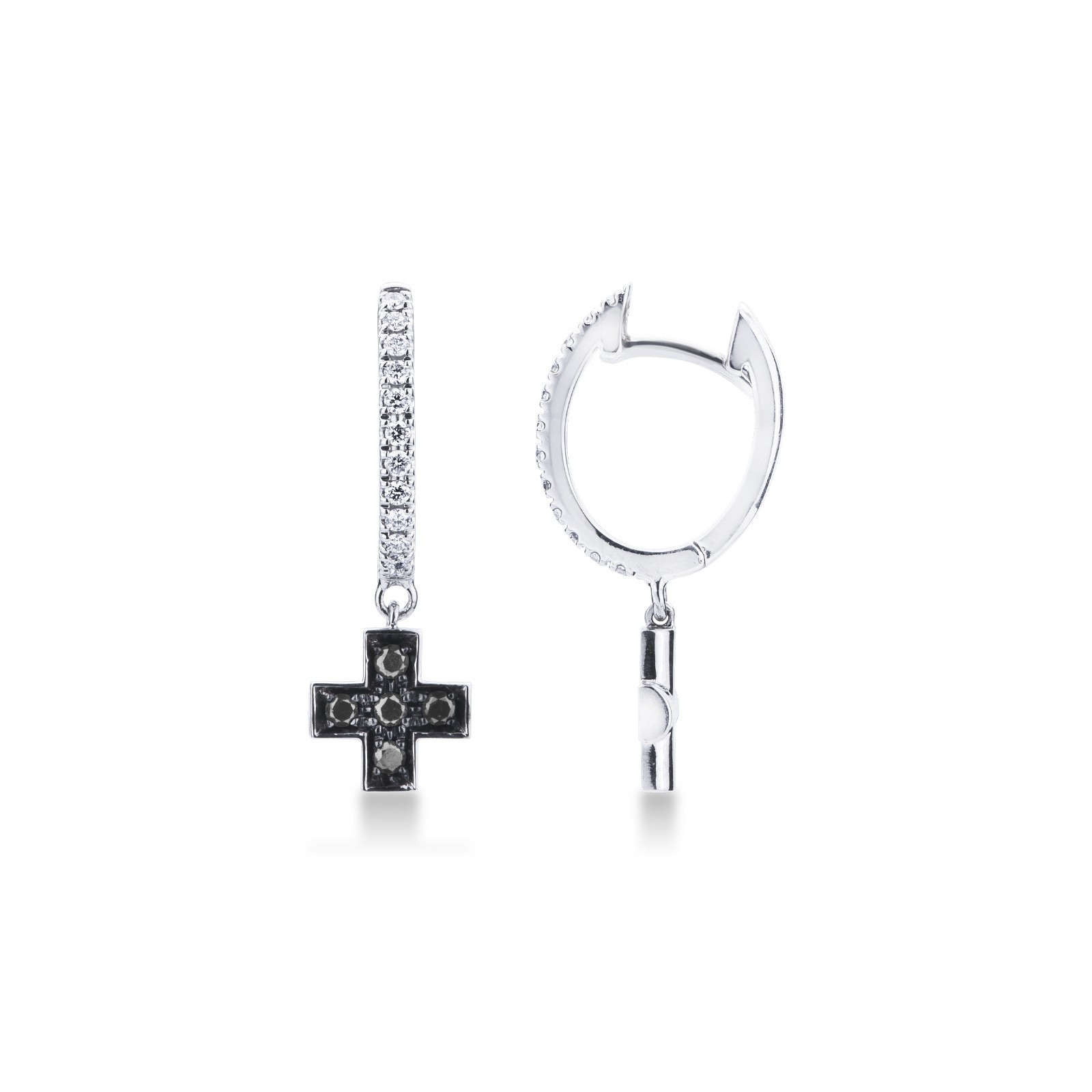 Diamant Creolen mit Kreuz aus schwarzen Diamanten